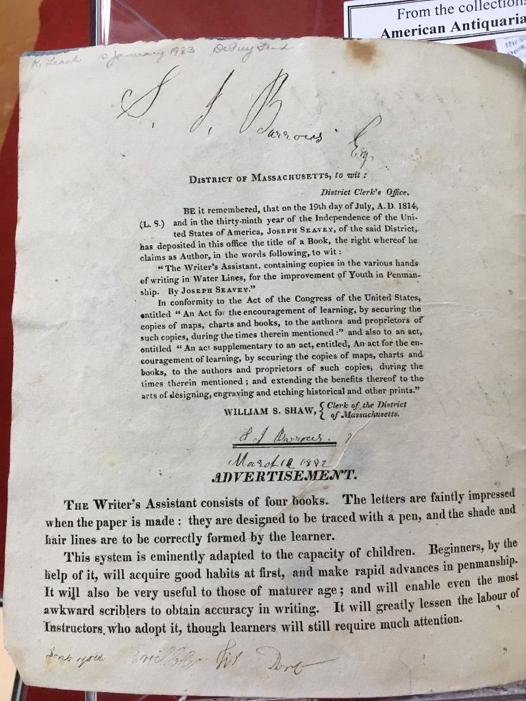 Writing manuals – primarily Renaissance and Baroque (now referred to as early-modern) period books – were foremost in my mind in 2015. What I wasn't much interested in was American 18th and 19th century penmanship books. There are a multitude of penmanship books published in this period. Why cover ground so thoroughly described by Ray Nash?