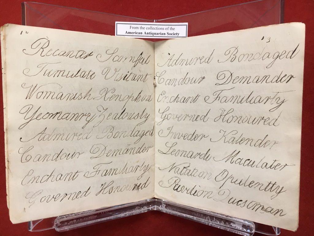 When I searched WorldCat, I found that the American Antiquarian Society in Worcester, MA held 2 volumes, as did the Massachusettes Historical Society. For a book that was offered for sale in dozens, or gross lots, that wasn't very many survivors. There was no mention in Ray Nash's work, and that excited me as well. I had already planned on visiting Worcester before being introduced to Seavy's mysterious title, but now I had a focus for my visit. I wanted to see if I could unearth any other copies of the booklets, and answer questions about its manufacture, whether it was well recieved (by the few institutions collecting it, I wondered if it sold very many copies), and how it was used. I couldn't figure out how the faint letters could show up well enough to copy without back lighting. It had to be able to be used by young students; I suspected a simple solution, but at the time couldn't figure out what that might be.
